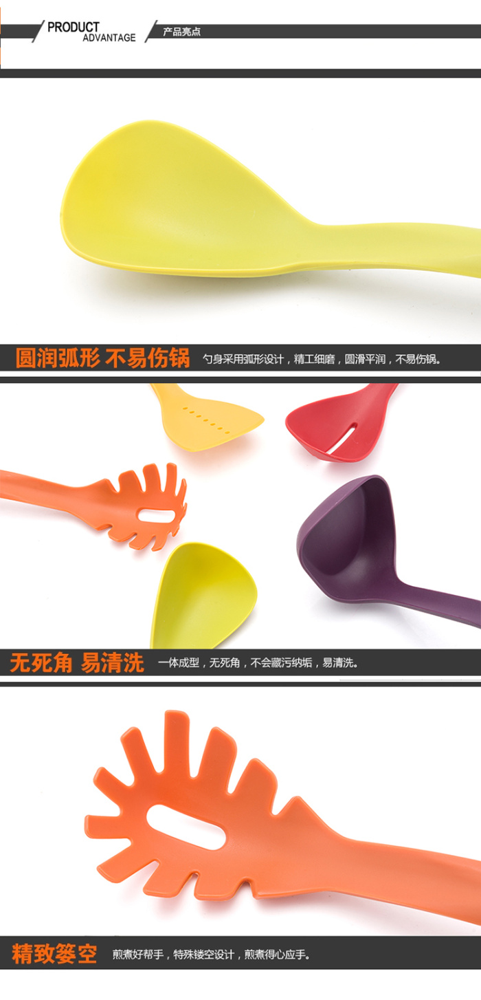 Peralatan dapur yang sangat unik, cantik, dan menarik ini dibuat dari bahan plastik tebal premium food grade menjamin kualitasnya. Set yang terdiri dari 5 macam sendok dengan masing-masing warna dinamis berbeda ini melengkapi dapur unik Nyonya. Warna-warna itu pula yang mampu memberikan sentuhan indah penampakan Dapur.